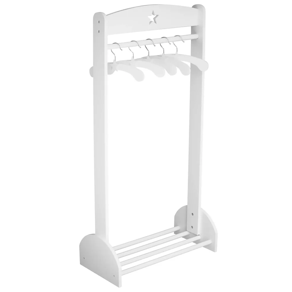 Enhance a bedroom or nursery with the Star Clothes Rail from Swedish children's brand Kids Concept. Hand-made from wood, the white clothes rail features a useful shelf, perfect for tiny shoes and a hanging rail at a child-friendly height. Perfect for introducing additional storage to a room and the perfect place for all those dressing up clothes.